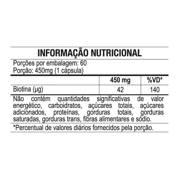 A biotina, também é conhecida como vitamina B7, é um nutriente que age na formação e manutenção da pele e dos cabelos, produção de glicogênio e proteínas, o que a torna essencial para o bom funcionamento do organismo.A Biotina contribui para manutenção do cabelo e da pele. Auxilia no metabolismo energético e de proteínas, carboidratos e gorduras. A Biotina auxilia na manutenção das mucosas.